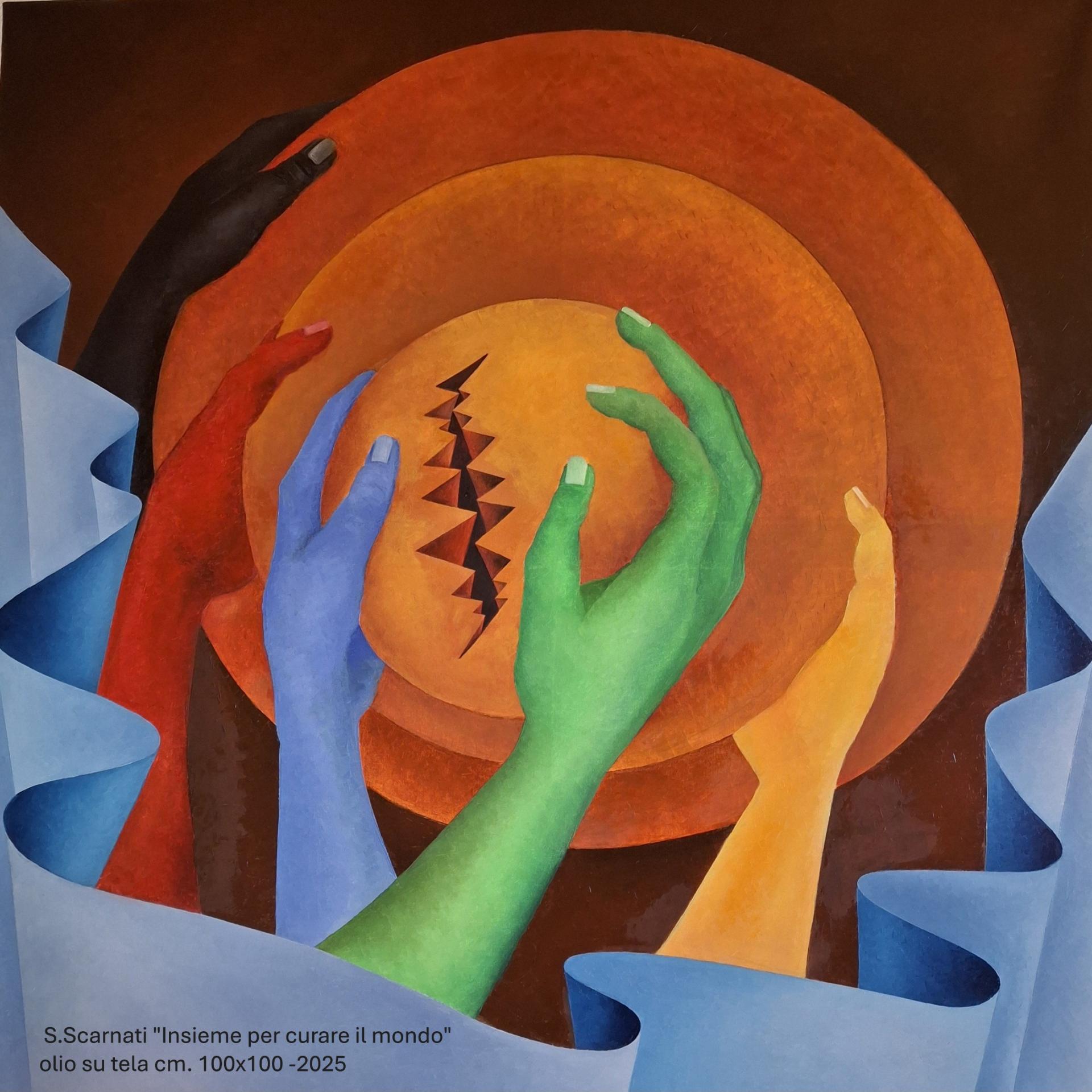 Esposte ci sono oltre quaranta opere tra pitture, sculture e incisioni realizzate da Scarnati a partire dal 1975. Nei suoi cinquanta anni di attività, l’artista ha scelto di utilizzare tecniche differenti dando vita a dipinti a olio su tela, grafiche, acquaforti, terrecotte e tecnopolimeri. Un tema ricorre sempre nella sua produzione ed è quello del “percorso”, inteso come momento di sviluppo e crescita compiuto attraverso nastrificazioni e superfici che tra luci e ombre raccontano di vissuti e emozioni. Artépore®, che deriva dal termine greco “poréa e significa appunto percorso, cammino, è la parola brevettata da Scarnati per definire ogni sua opera.